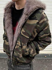 重厚感のあるファーに迷彩柄、これまでにないミリタリーとストリートのドッキングジャケットです。ボンバージャケットのようなシルエットと、ダイヤモンドカットが施された着面は非常に優美で力強いシルエットを演出します。