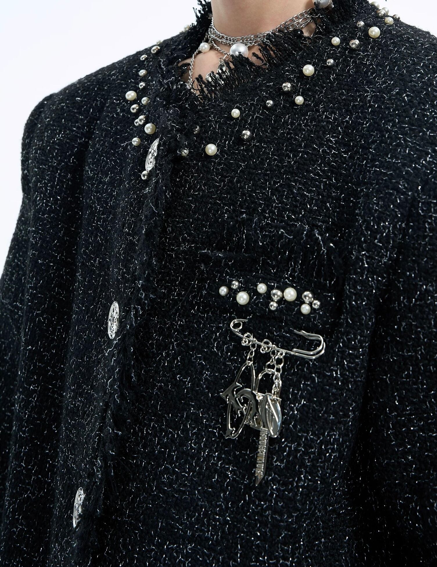 G-DRAGONのような独創性と存在感をまとえるフリンジツイードジャケット。クラシックなツイードにエッジの効いたデザインを融合し、シャープなシルエットがスタイルを引き締めます。装飾のきらめきがラグジュアリーさを加え、ストリートからモードまで幅広く活躍する主役級の一着です。