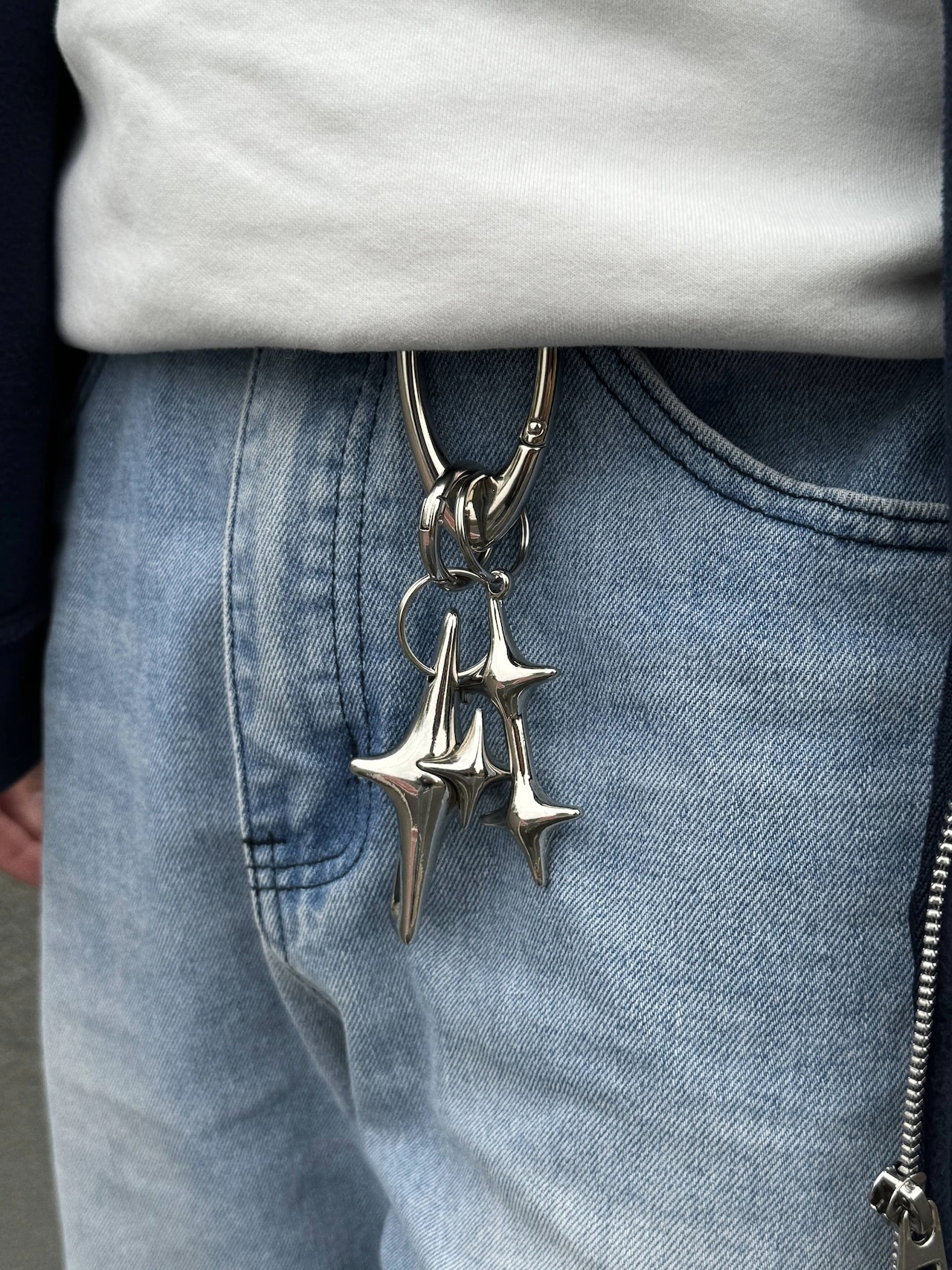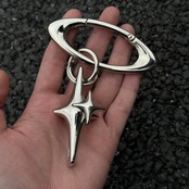 シンプルすぎないメタリック調のカナビラです。Y2Kの要素が強く、デニムやスラックスの上から着用し、シンプルなスタイルにも力強いアクセントを加えてくれるアイテムです。opiumスタイルにも落とし込めるかと思います。