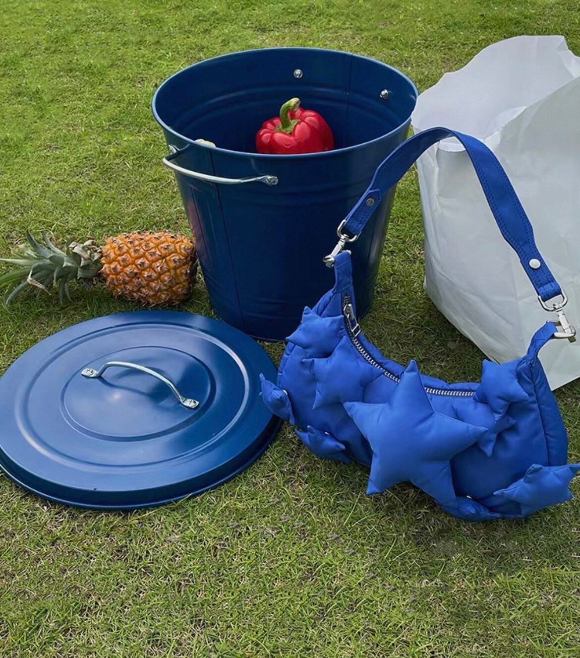立体的なスターシルエットが視線を奪う、モード×ストリートなパファーショルダーバッグ。中綿入りのボリューム感がopiumやY2Kスタイルと好相性で、シンプルなコーデに一点投入するだけで強い存在感を演出します。軽量ながら収納力もあり、アクセサリー感覚で使えるのも魅力。ブラックの質感がスタイリングを引き締め、ジェンダーレスに活躍する今季注目の小物です。