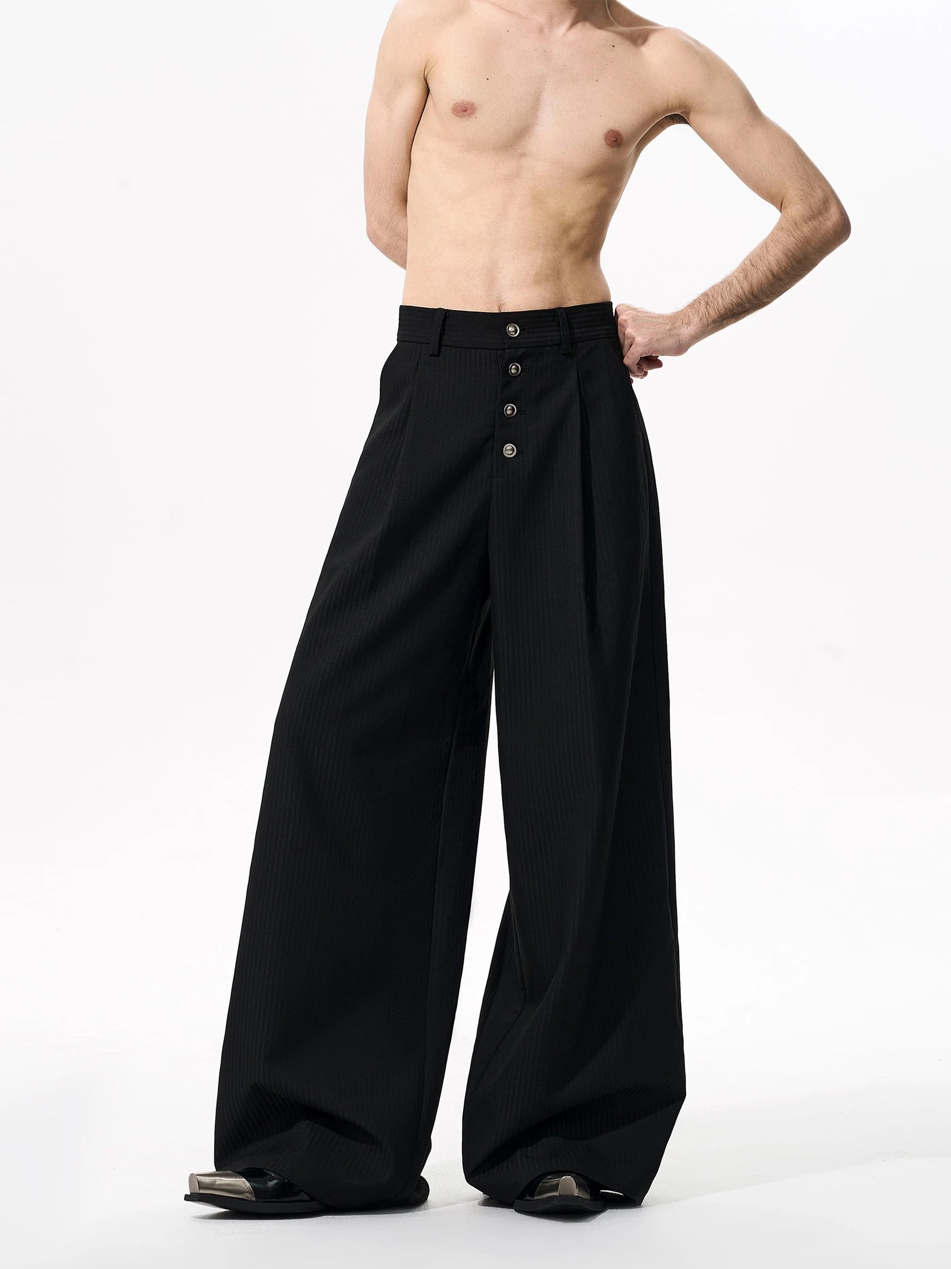 STARTEXCEEDEND Obsidian Line Multi-Button Wide Slacks