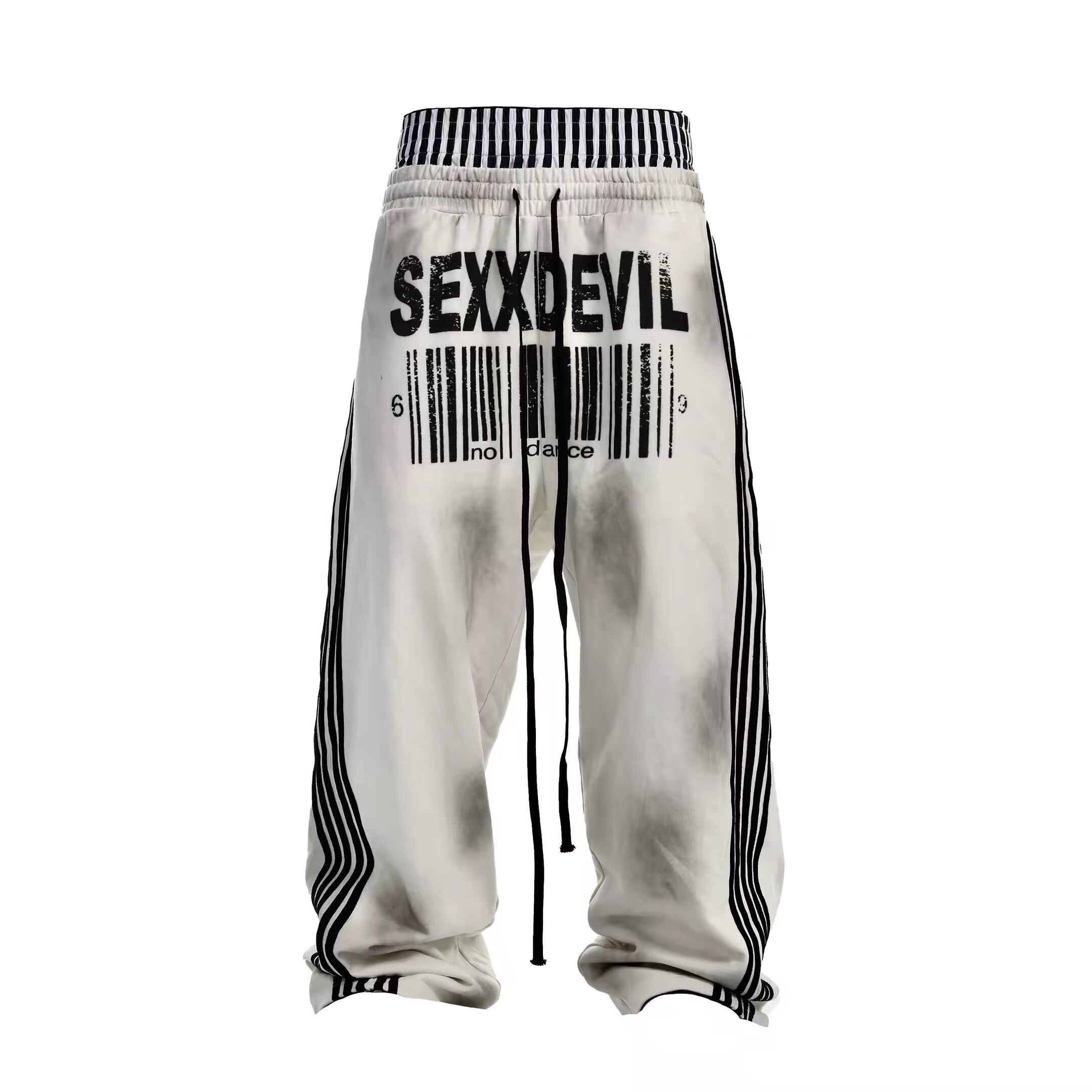 SEXXDEVIL Barcode Graphic Sag Denim Sweatpants