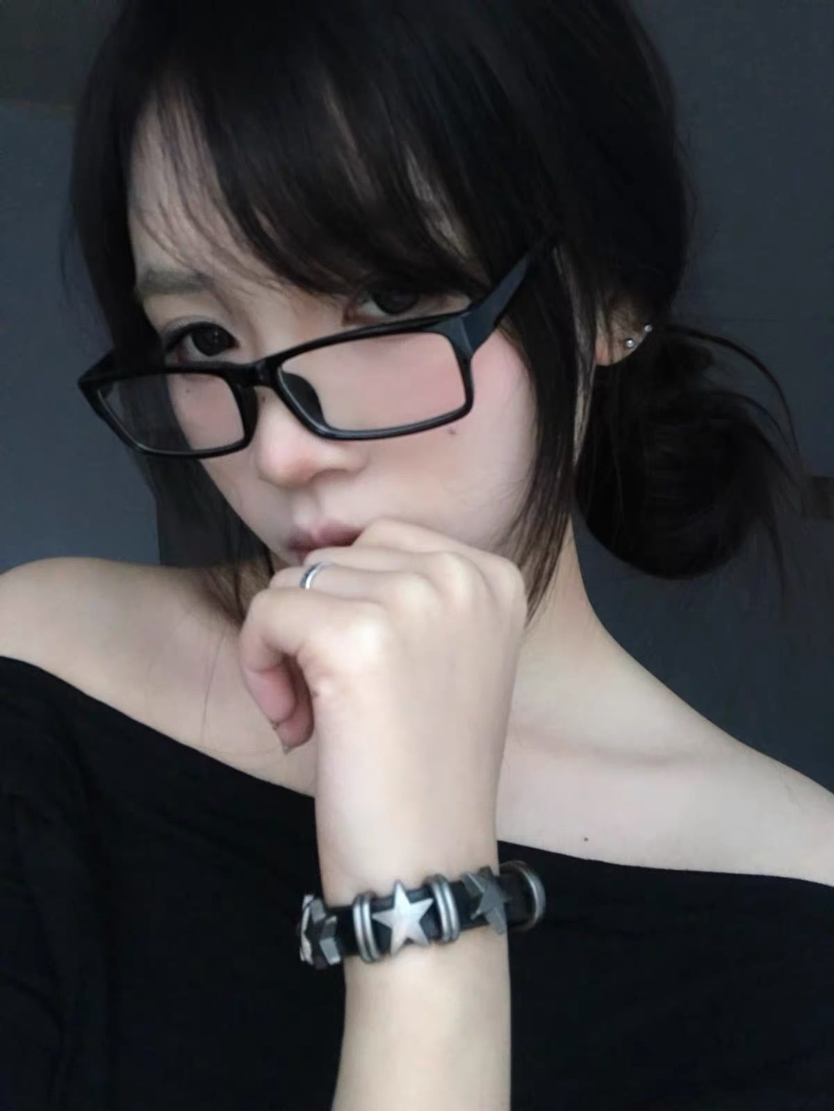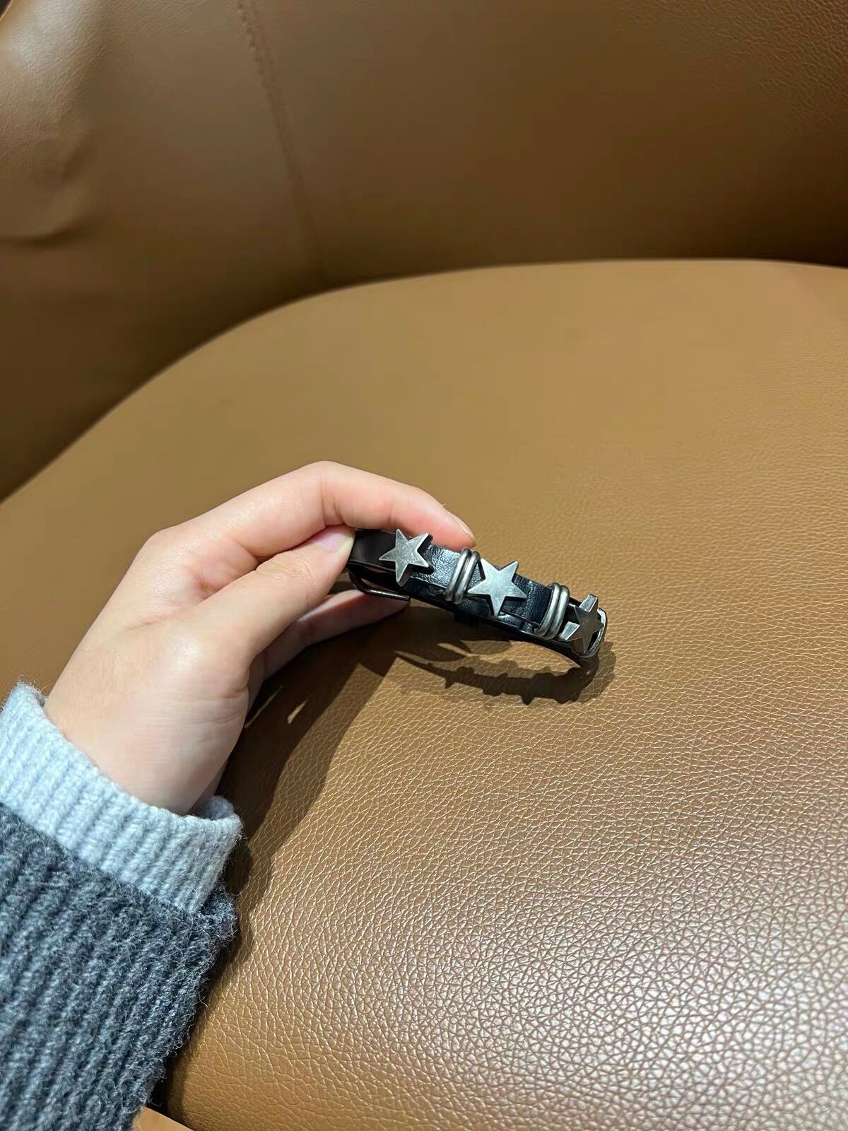Y2K Silver Star Leather Bangle バングル