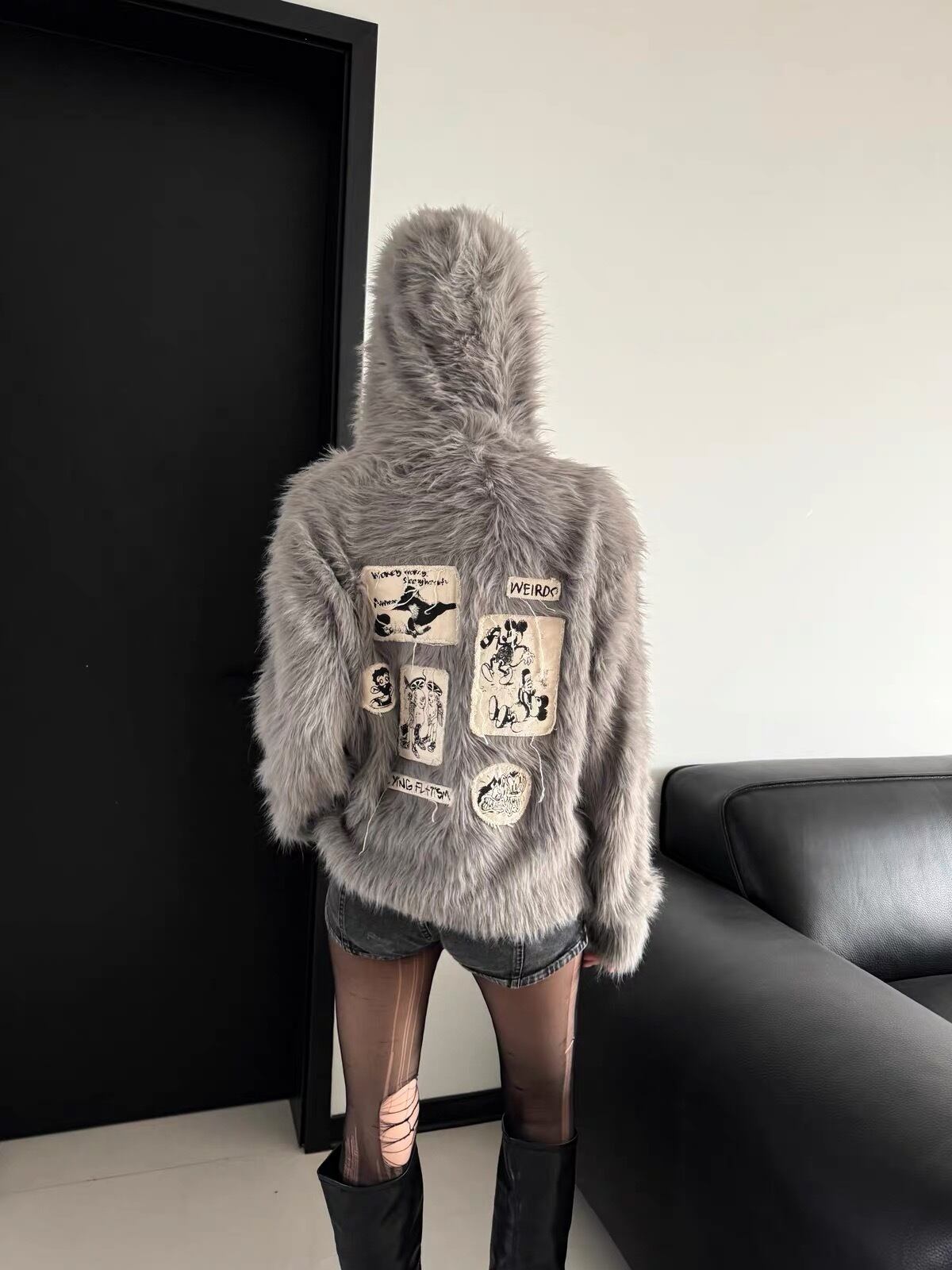 毛足の長いシャギー素材が放つ退廃的なムードと、ラフに配置されたパッチデザインが印象的なグランジフーディ。90年代オルタナティブシーンを象徴するNIRVANAのカート・コバーンを彷彿とさせる、気怠さと反骨精神を宿した一着。柔らかな質感とルーズなシルエットが、着るだけでスタイルに“崩し”と奥行きを加える。ダメージデニムやチェックパンツ、サグデニムとの相性はもちろん、Y2K・グランジ・アンダーグラウンドスタイルと高い親和性を持ち、インナー次第でレイヤードも楽しめる主役級アイテム。