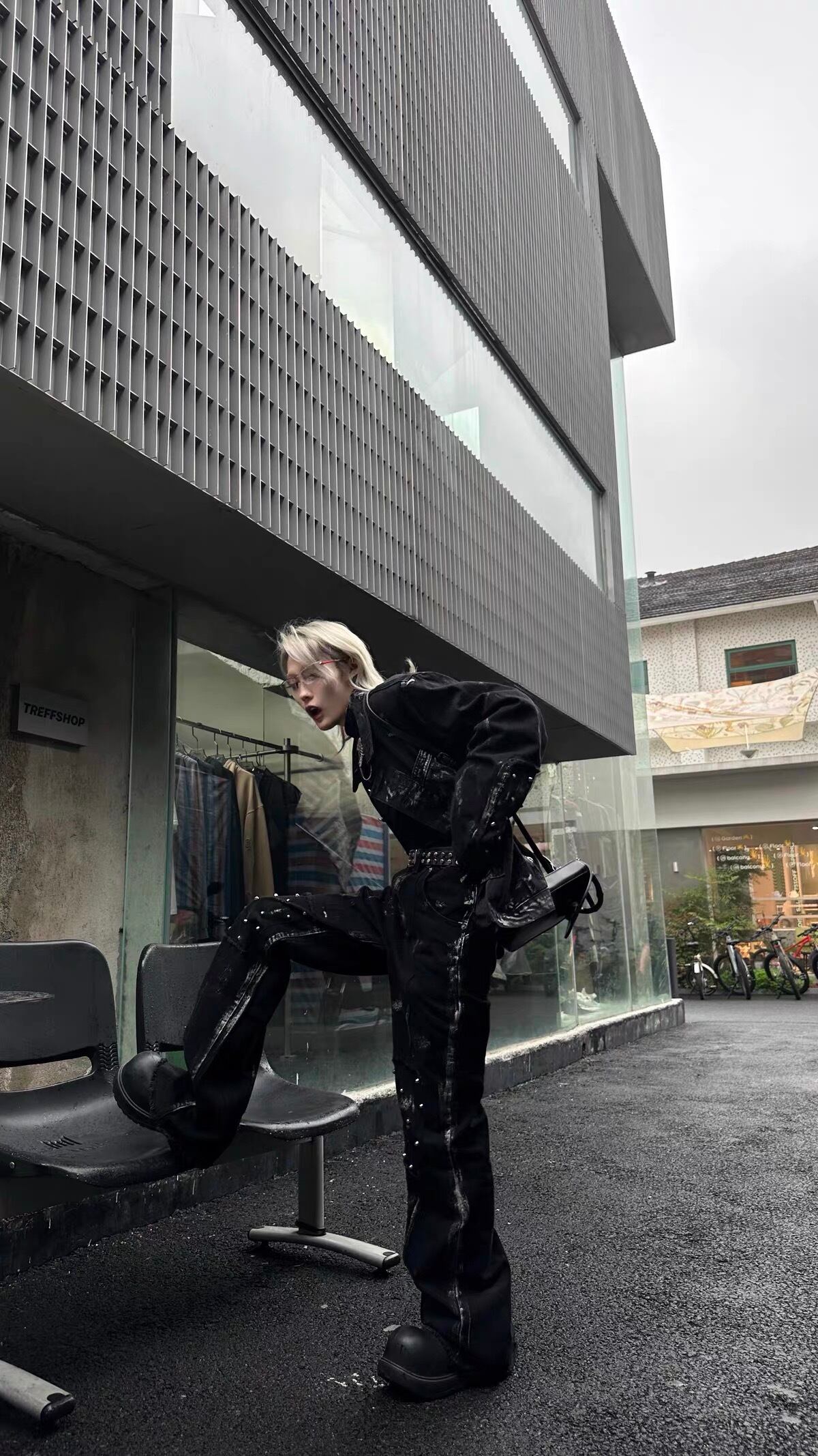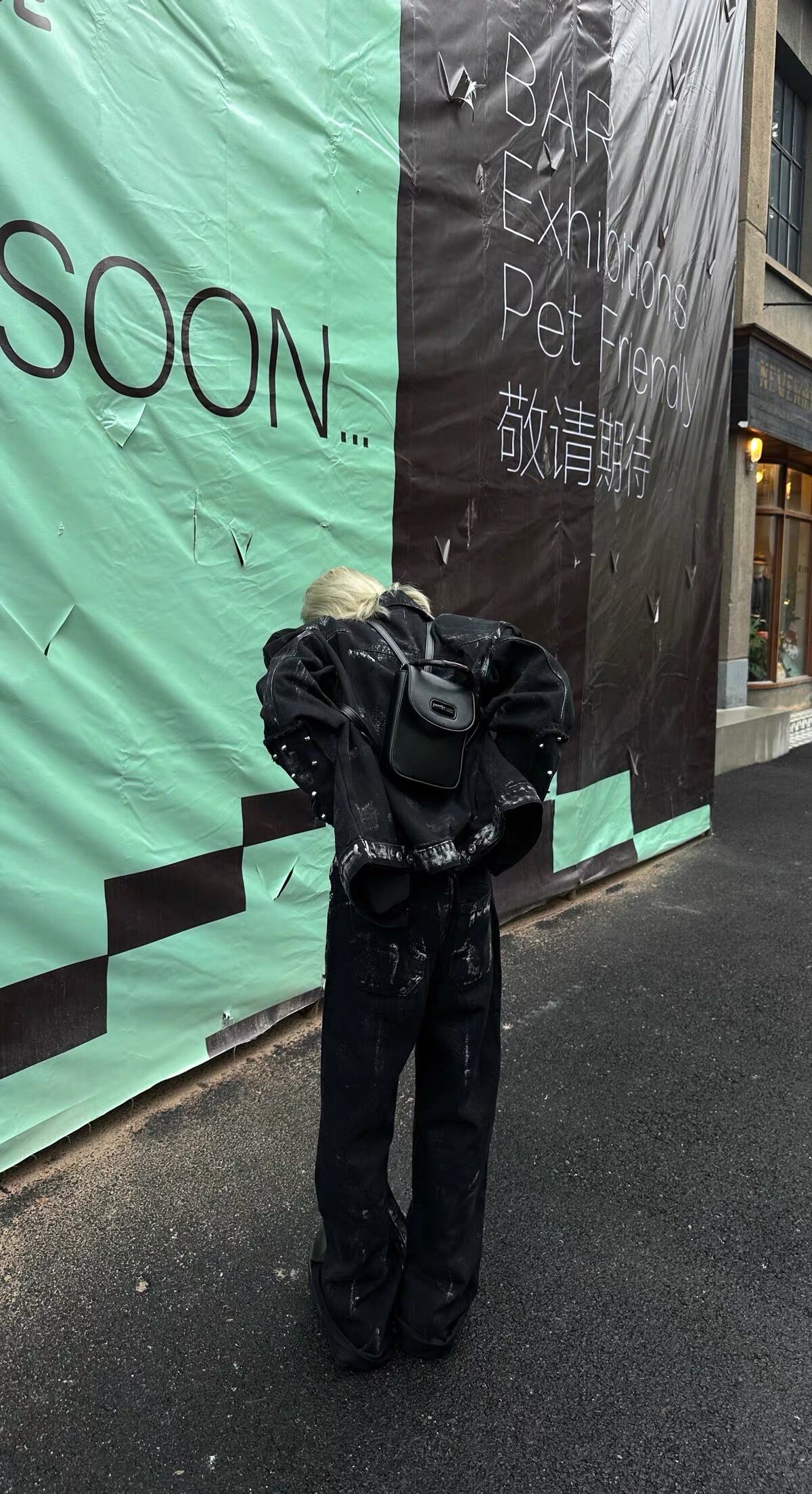 ブラックデニムに大胆なペイント加工を施した、存在感のあるワイドフレアデニムパンツ。太ももから裾にかけて美しく落ちるシルエットが特徴で、グランジ・Y2K・モード系コーデに一気に深みを与えます。ボリュームのあるブーツや厚底シューズと合わせることで、トレンド感のあるストリートスタイルが完成。ペイントデニム、フレアデニム、ワイドパンツを探している方におすすめの一本です。