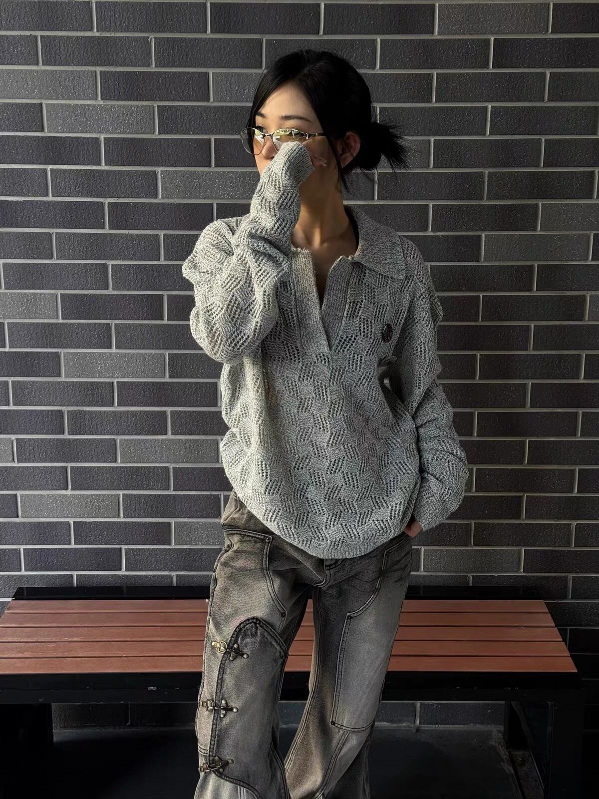 オープンウィーブ グランジカラー ニット セーター