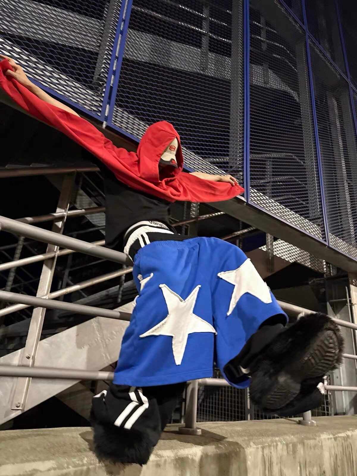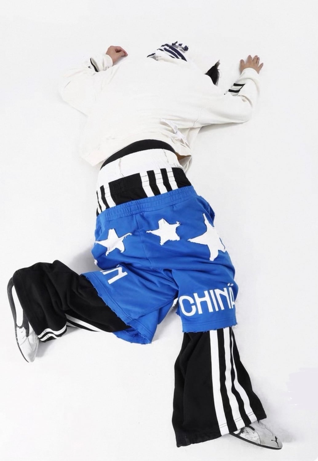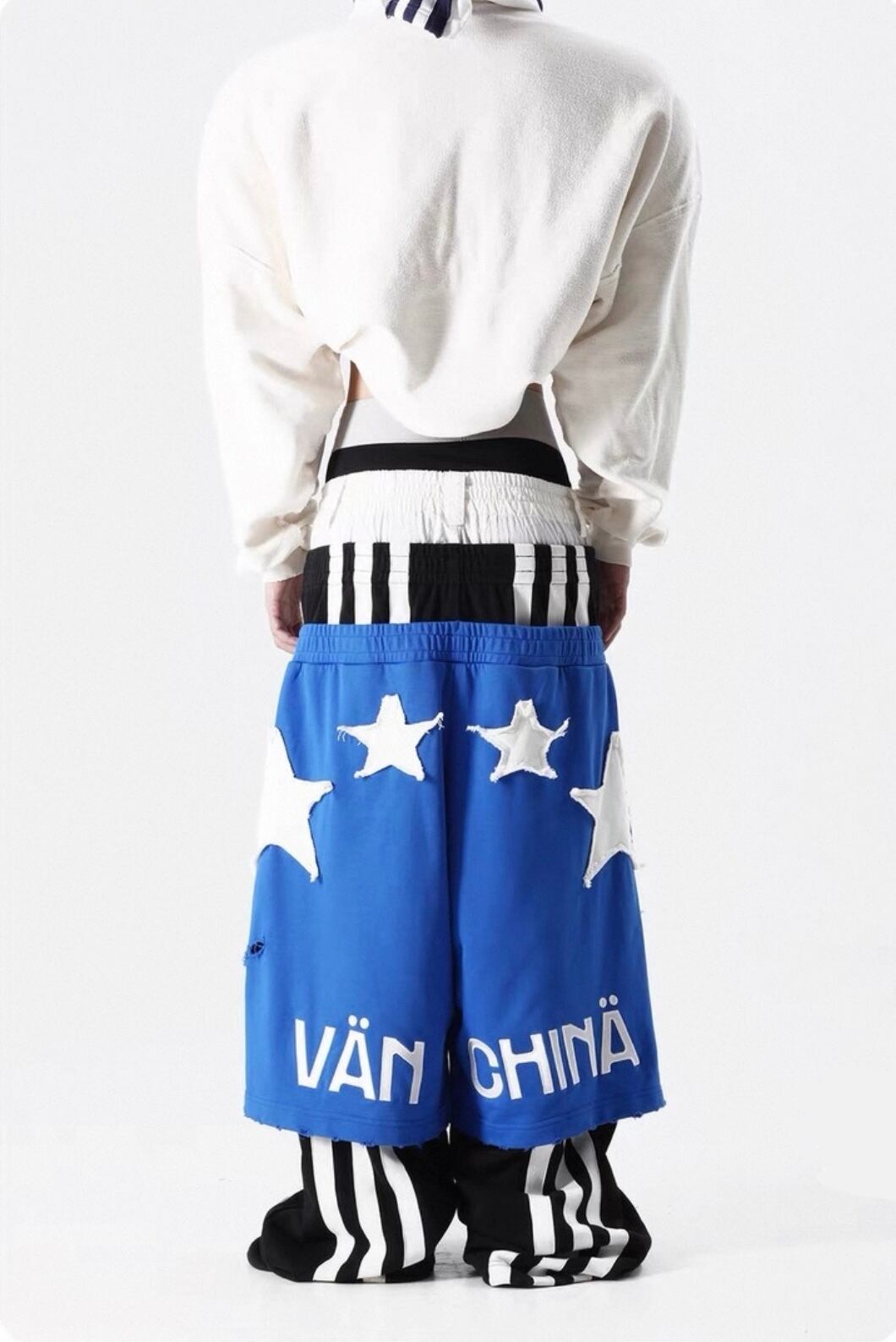 大胆に配置されたスターグラフィックと、腰位置を極端に落としたサグシルエットが特徴のスウェットデニムパンツ。00sストリートやY2Kの空気感を強く感じさせる一本。スウェット素材のラフさに、グラフィックの主張とルーズな落ち感が加わることで、スタイリング全体を一気に引き上げてくれる。クロップド丈トップスやタイトなカットソーと合わせることでシルエットのコントラストが際立ち、グランジ、アーカイブ、スポーツミックスといったジャンルと高相性。