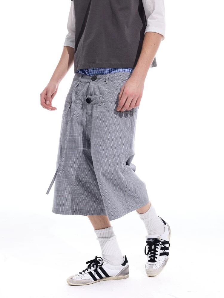落ち着いたチェック柄をベースに、サグ感のあるウエストデザインとワイドに広がるシルエットを掛け合わせたショートスラックス。ラフさを持ちながらも、どこか品のあるバランスが魅力で、一般的なショーツにはない独特の空気感を演出してくれます。ソックスやボリュームのあるシューズと合わせることで、より立体感のあるスタイリングが完成。アーカイブやノームコア、少しひねりの効いたモードスタイルとも相性の良い一本です。